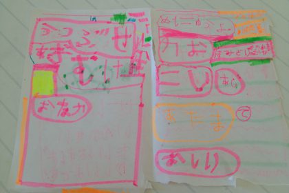 こらー!幼稚園サボって美味しいもの食べてるのは誰だー(笑) でも、ただサボっているわけではないようです。 今度はメニューを作...