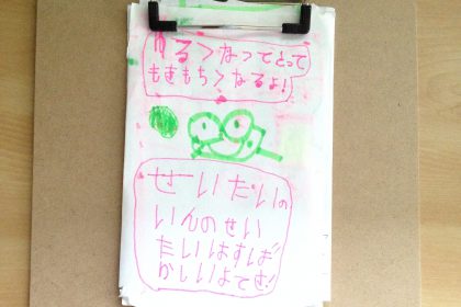 めずらしくサクサクと幼稚園へ行く準備を進めるケロのすけさん。 出かける30分前にすっかり仕度が整っていました。 母が慌てて準...